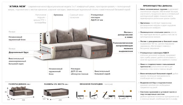 Мягкие элементы: Ткань, Эластичная пена марки EL, Независимый пружинный блок, ППУ, Спанбонд